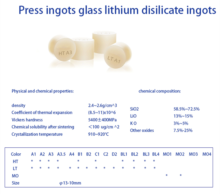 Diş laboratuvarı cam seramik lityum disilikat pres külçeleri için diş ekipmanı malzemesi Diş Lityum HT/LT